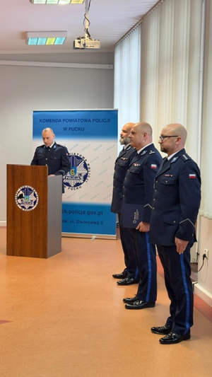 Podczas uroczystości mł. insp. Tomasz Juński pogratulował nowemu komendantowi i życzył mu wielu sukcesów oraz satysfakcji z pełnienia służby na rzecz bezpieczeństwa mieszkańców powiatu puckiego.