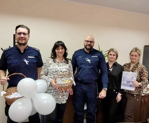 Policjanci z Kosakowa z pracownikami Gminnego Ośrodka Pomocy Społecznej w Kosakowie wspólnie przeciw przemocy wobec kobiet w kampanii „Biała Wstążka”