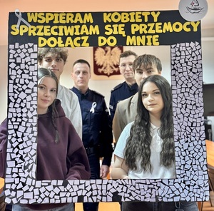 Policjanci z Młodzieżową Radą Powiatu Puckiego wspólnie przeciw przemocy wobec kobiet w kampanii „Biała Wstążka”
